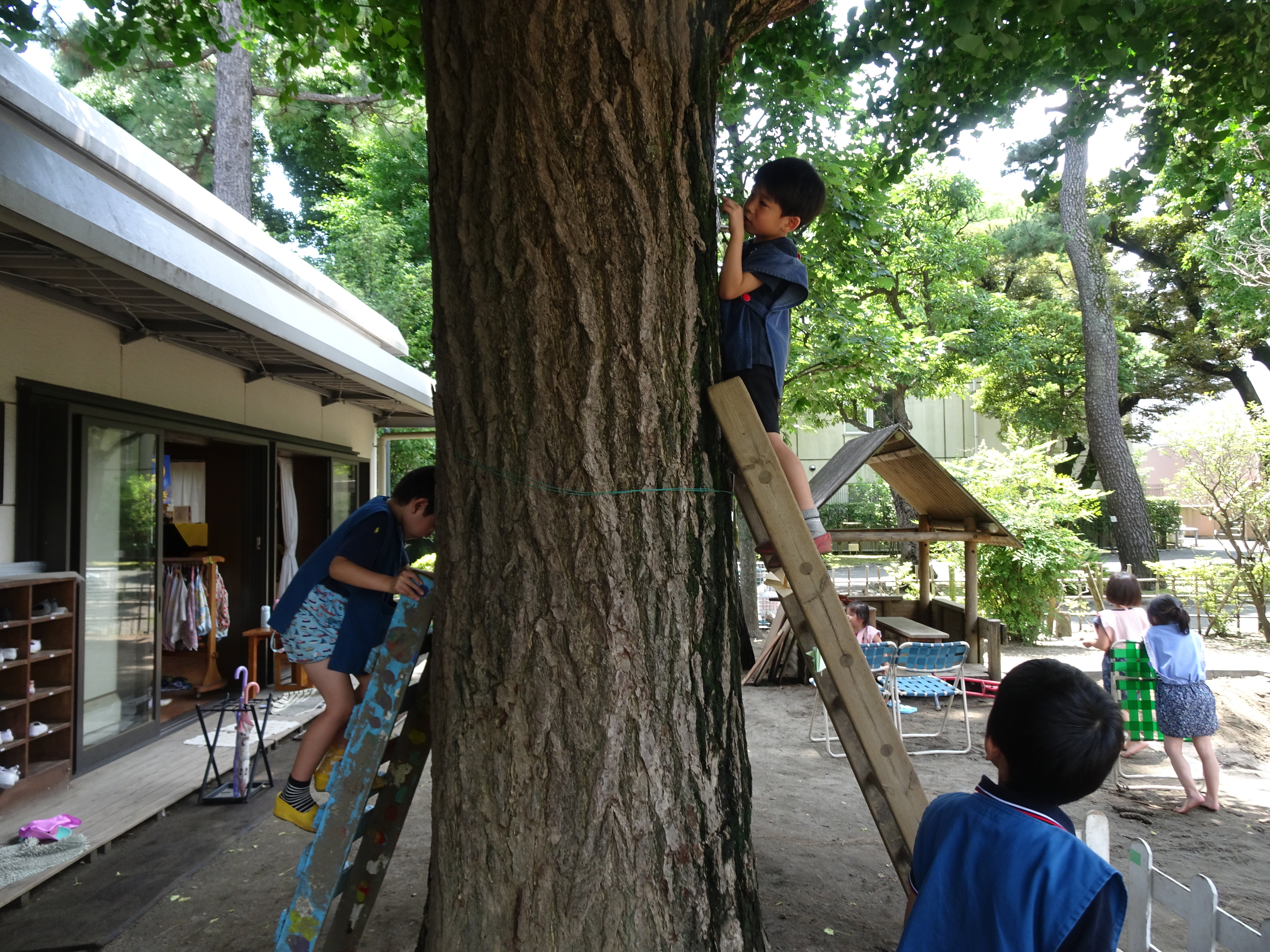 見つけた子どもたちははしごをかけて調べます