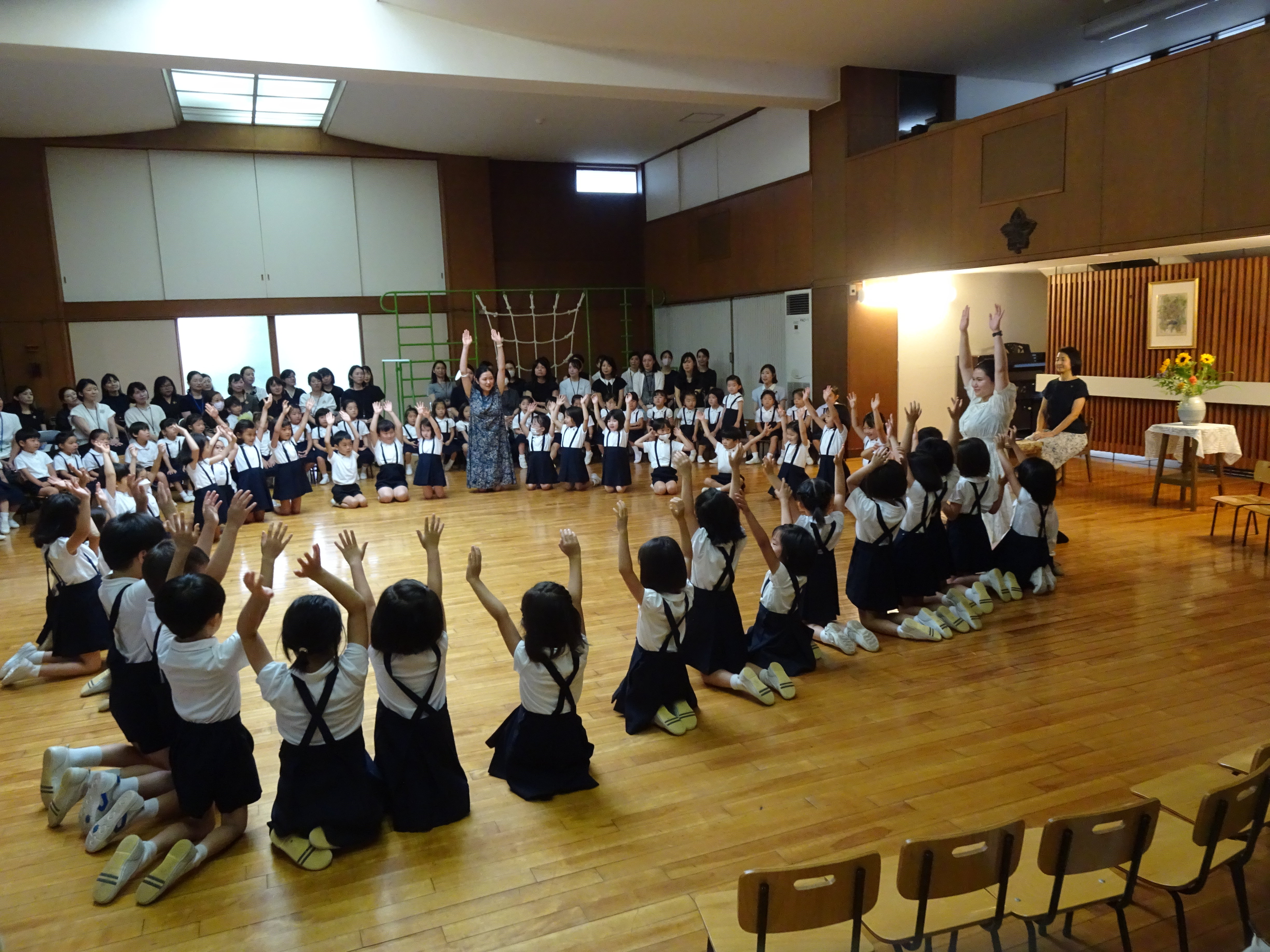 キャンプで踊った楽しい踊りを年中組の子ども達、おうちの方に披露しました