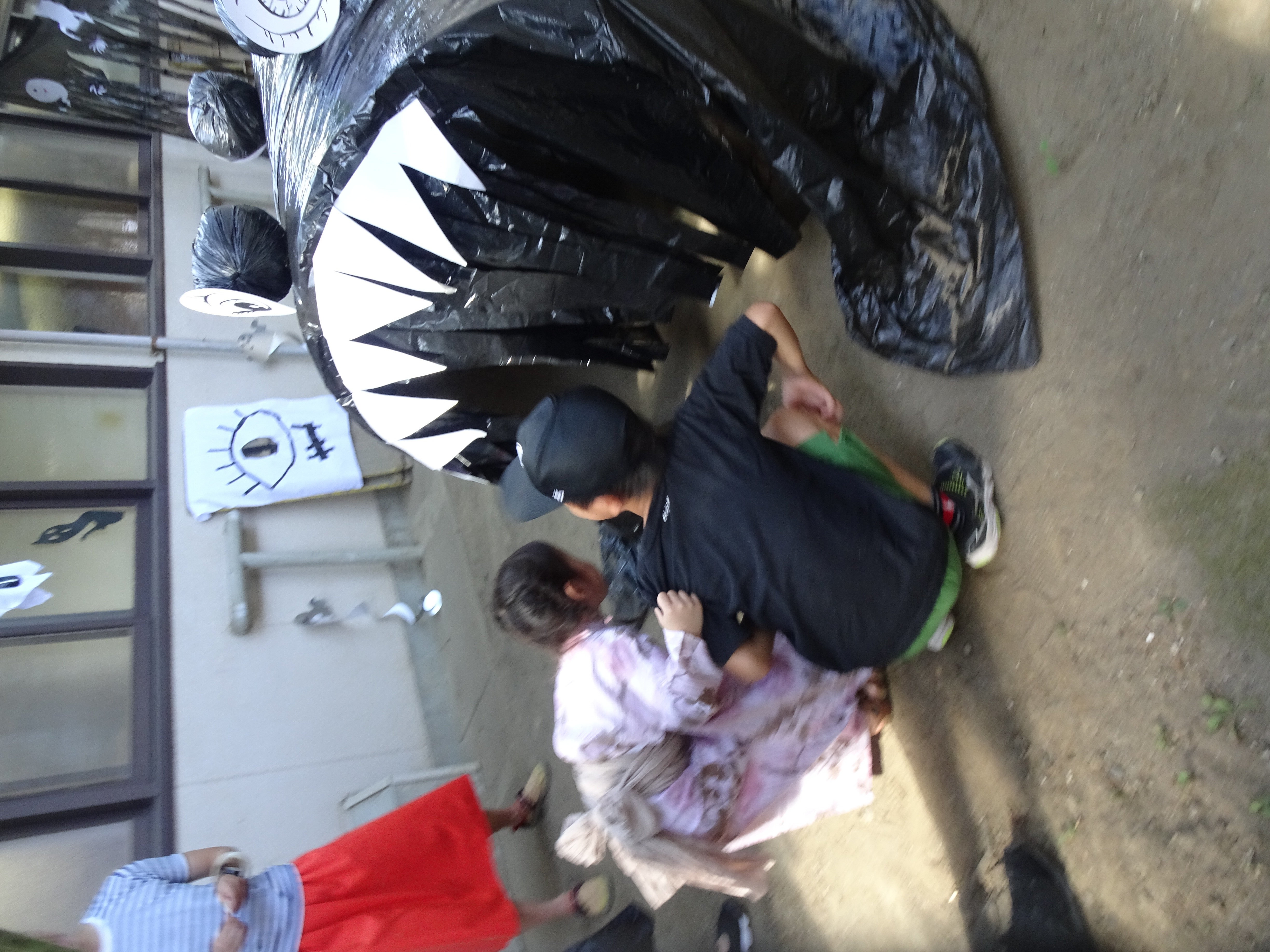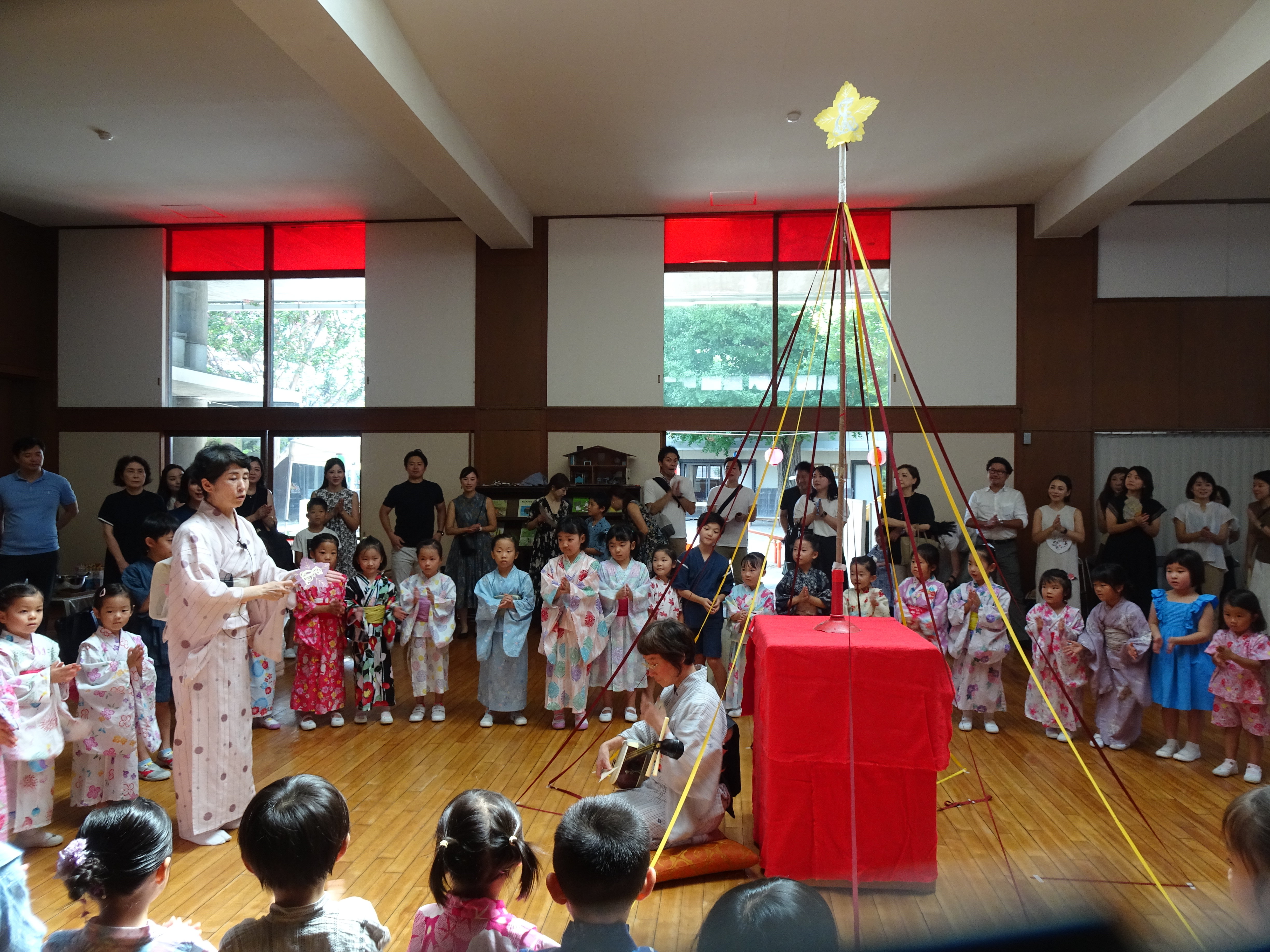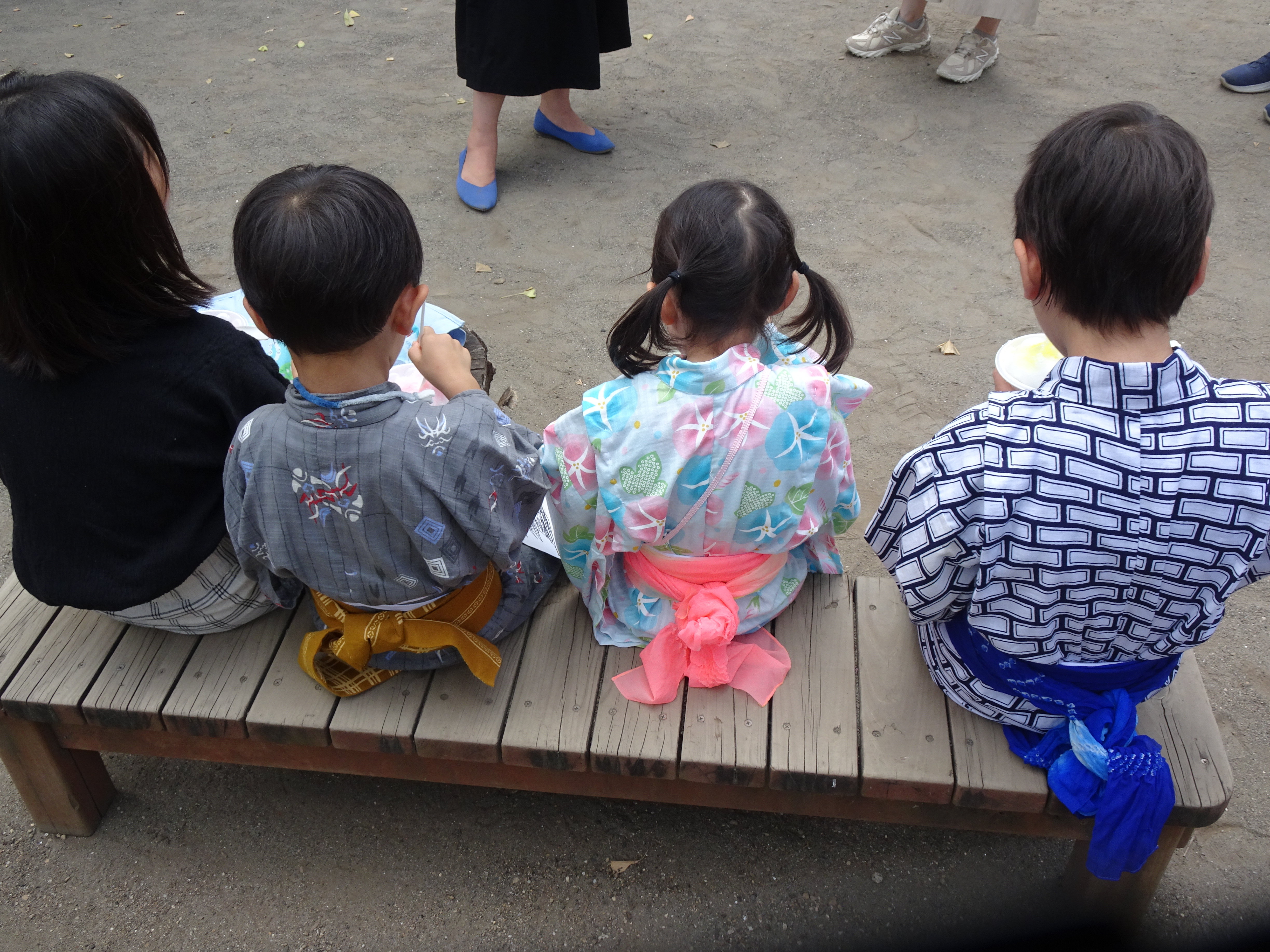 東洋英和幼稚園だより かえで夏まつり 夏休みが終わりに近づいたある日、久しぶりに幼稚園がにぎやかな声に包まれました ホールでは三味線の音色に合わせて「英和音頭」を 踊りました 保護者の方の創意工夫のつまったコーナーを家族で まわります 金魚すくいや輪投げ、ボール投げを楽しみ たくさん並んだ手作りの景品の中から、お気に入りの 一つを選びました 裏庭はお化け屋敷です いつも遊んでいるヒューム管のお化けが大きな口を開けて待っています 暑い日にいただくかき氷は格別です もう少しすると幼稚園が始まります 楽しみに待っていますね 前へ 一覧へ戻る 次へ