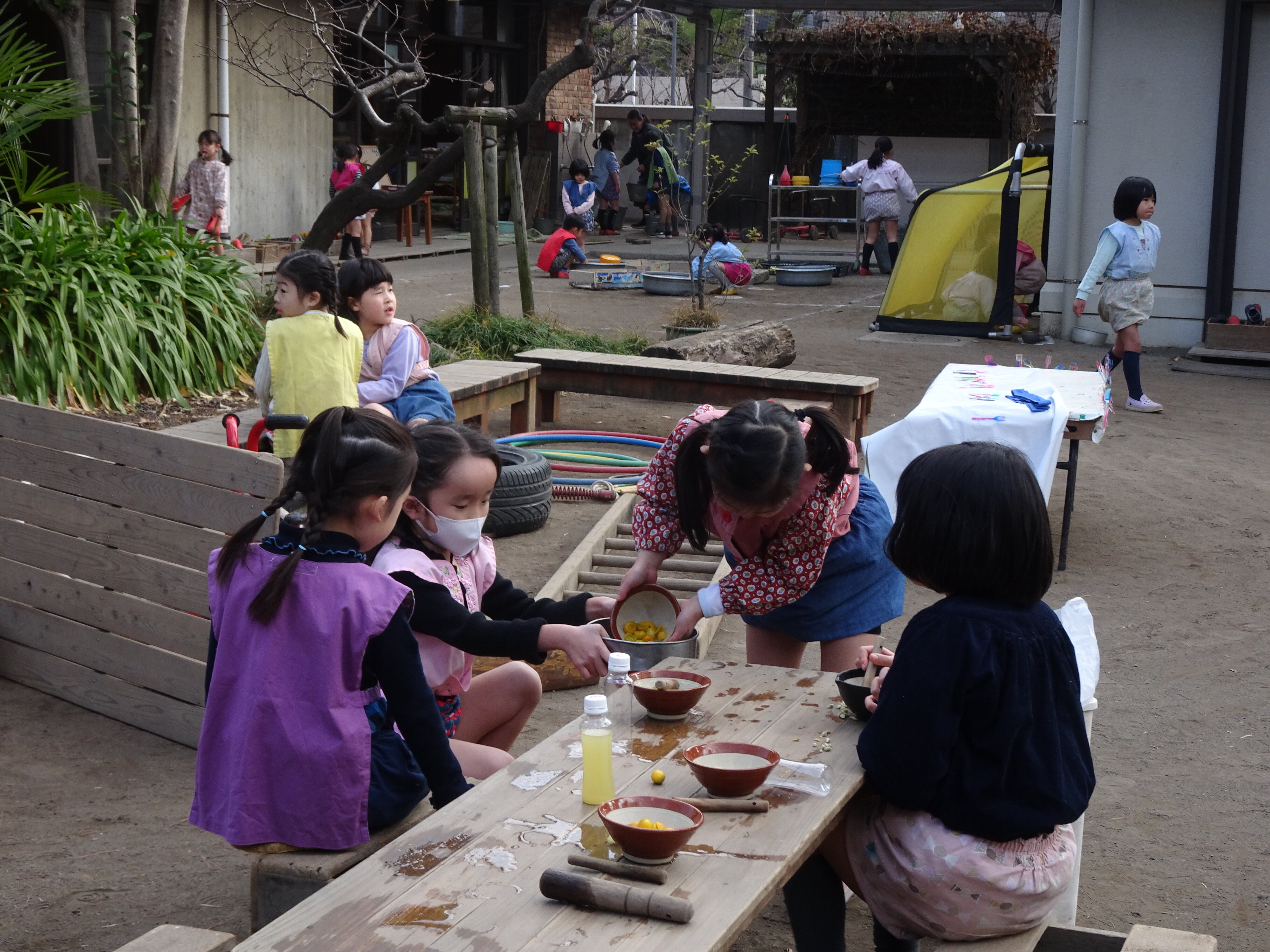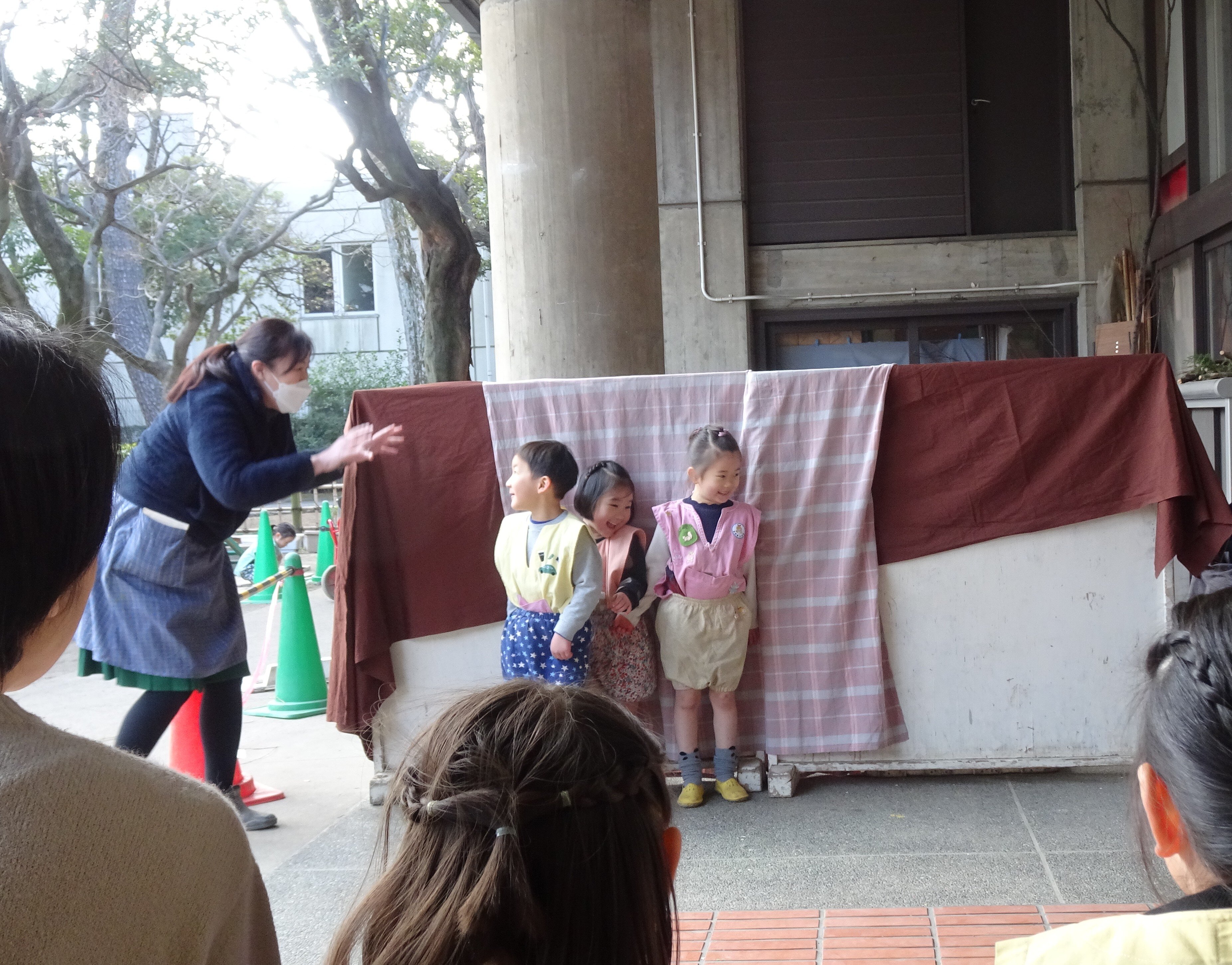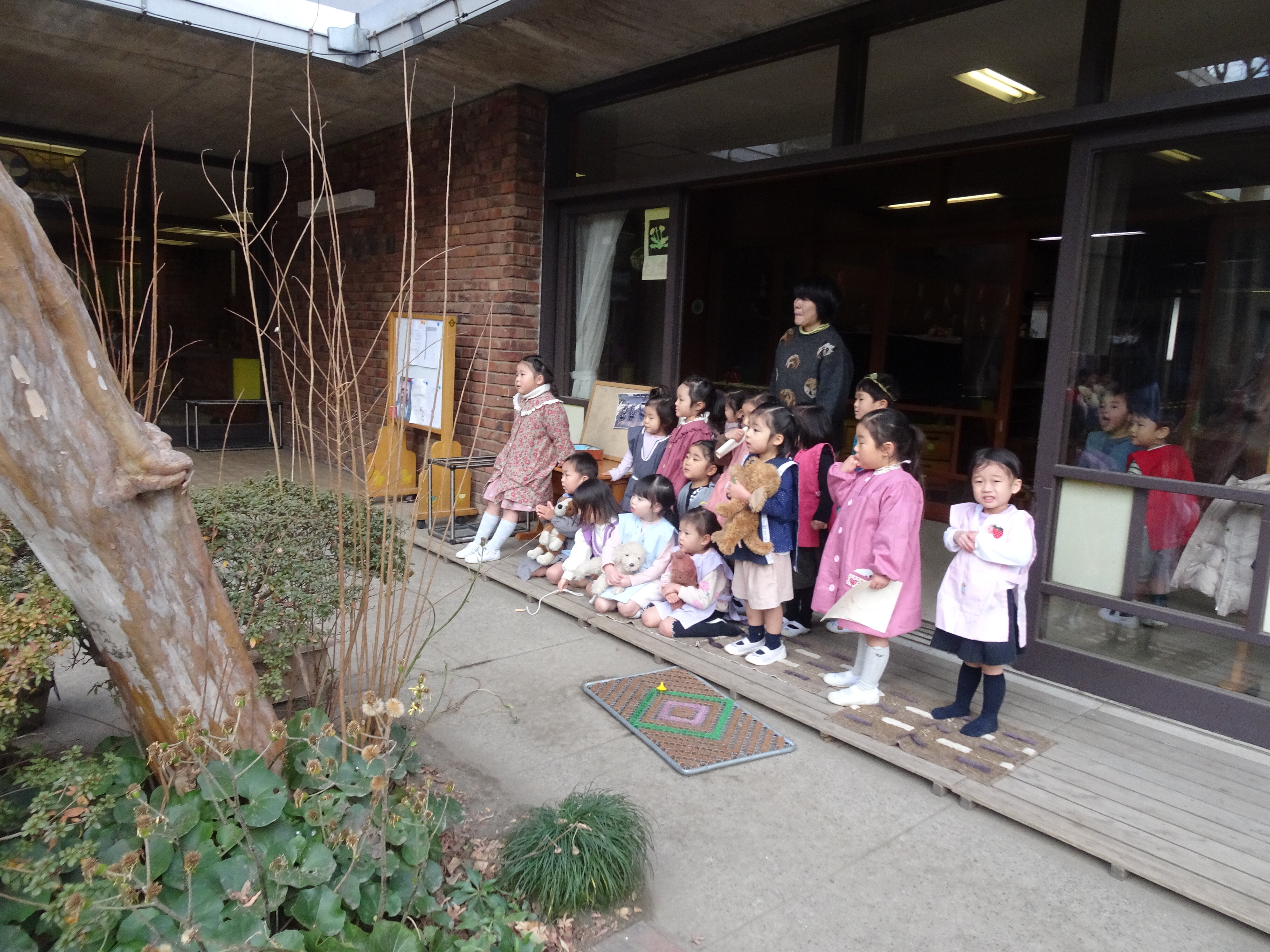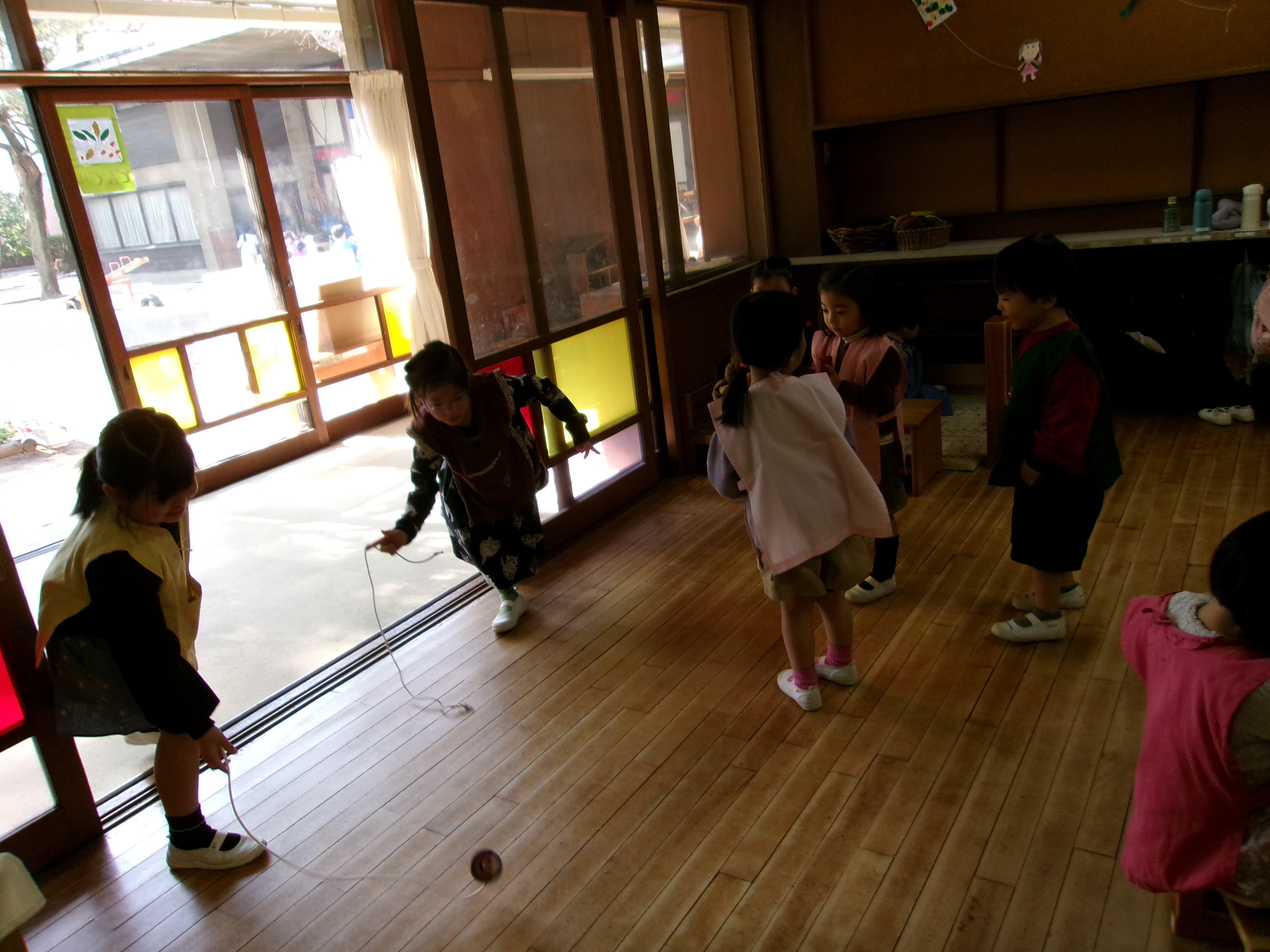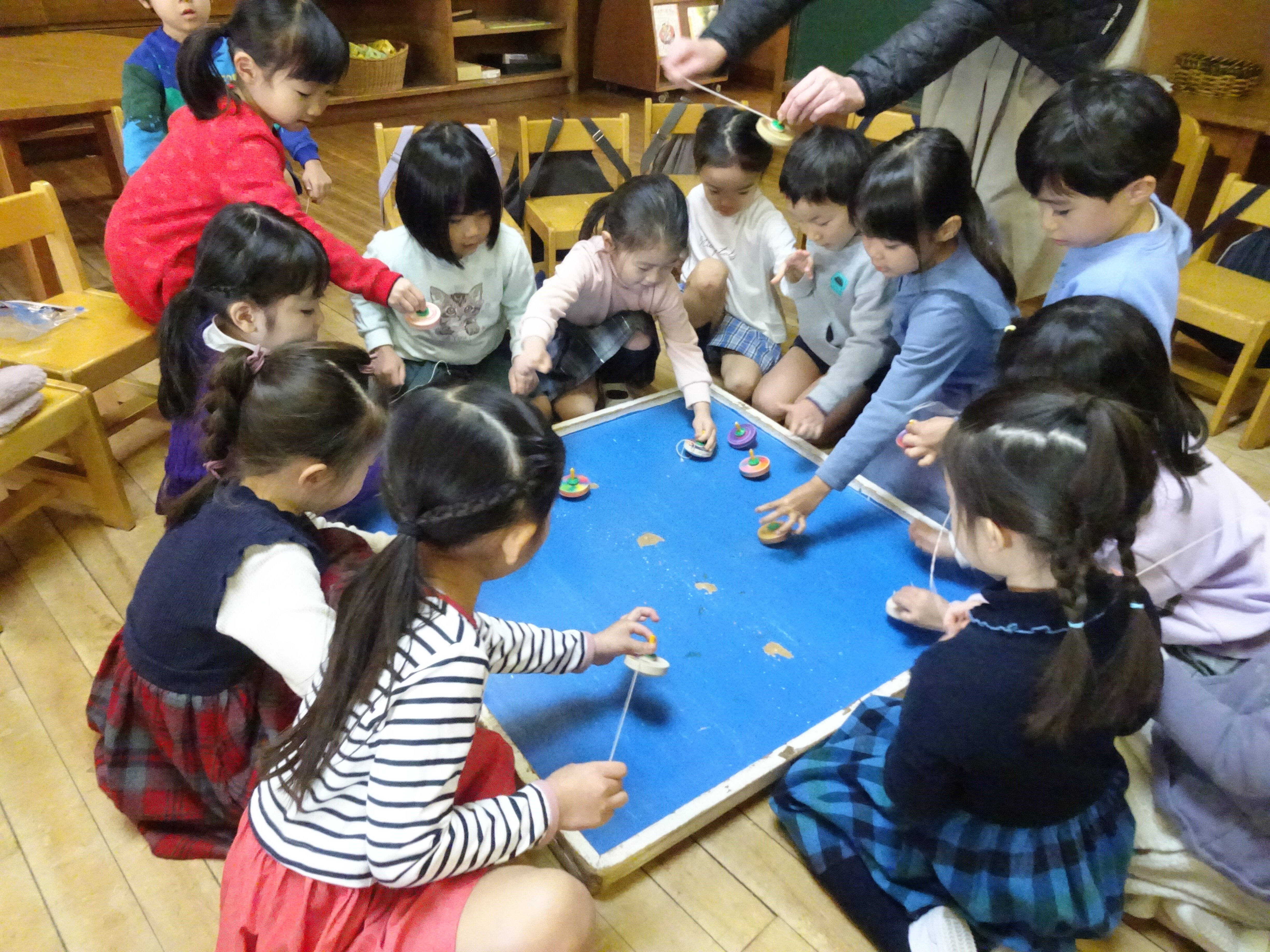 東洋英和幼稚園だより 子どもたちの様子 すっかり「はだかの木」になったいちょう 庭のきんかん おいしくいただいて、そのあと良い香りの香水屋さんが始まりました 庭で始まった キツネとドラゴン、プリンセスが登場する劇 年少組のお客様もやってきました あんまり近いと「ドラゴンが怖いかも」と遠くから劇を見せてあげていました コマ回し 紐を巻きつけるところから始まり、回せるようになってくると楽しくて仕方がありません 上手に回せるようになって、小さい組に見せに来てくれました 前へ 一覧へ戻る 次へ