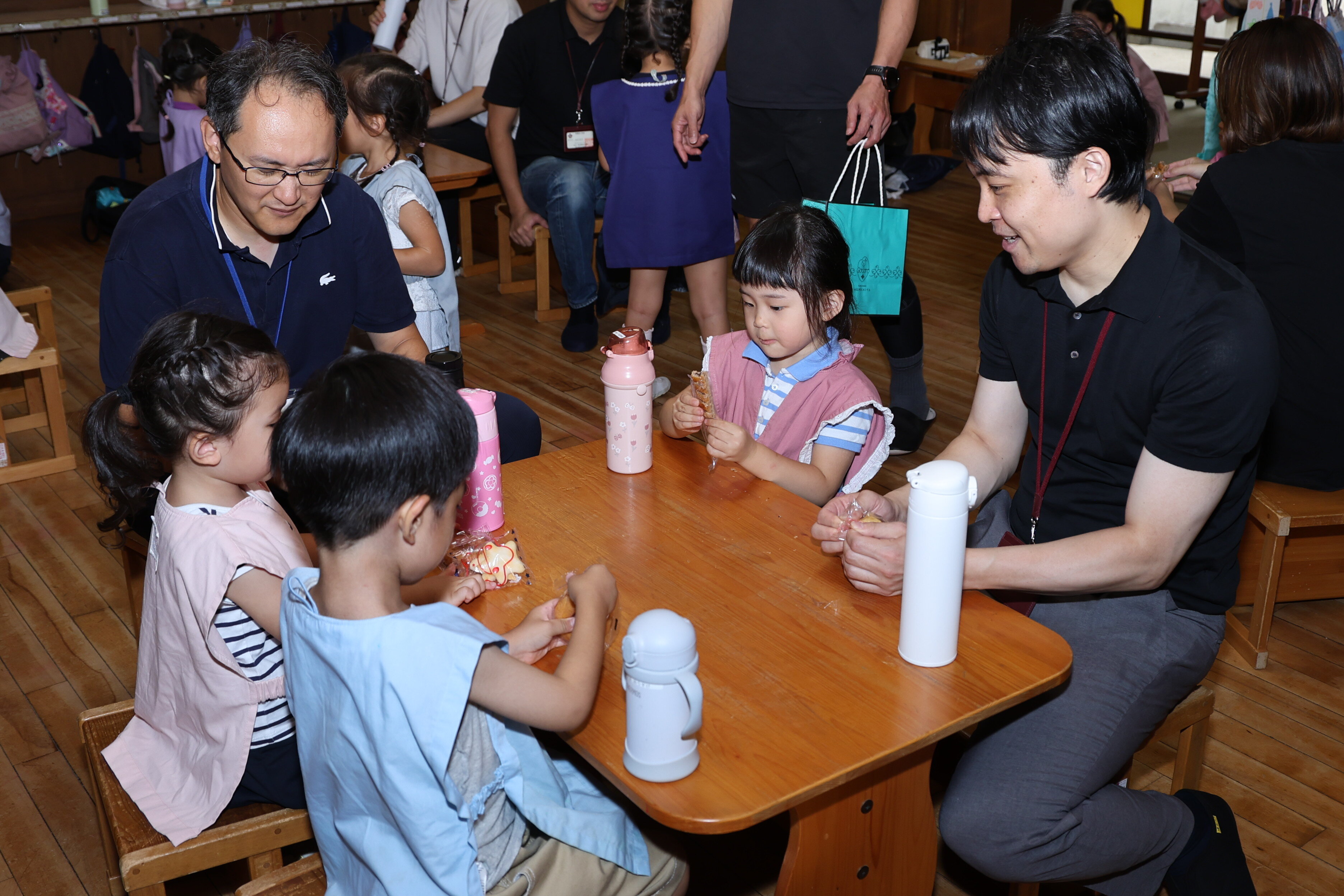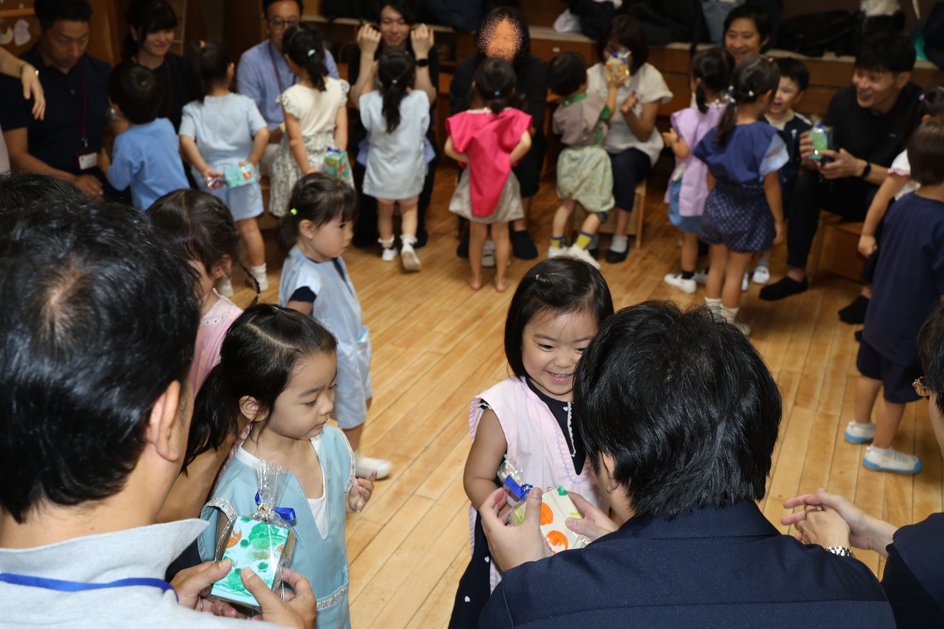 東洋英和幼稚園だより 年少組 お楽しみ(親子) お家の方を幼稚園にお招きしてたくさん遊びました 今日はおやつも一緒にいただきます 子どもたちが運転手 タクシーに乗って出発です からだをたくさん使って楽しみました 秘密で用意したプレゼントを差し上げます もらったお家の方も、差し上げた子どももうれしそうです 前へ 一覧へ戻る 次へ