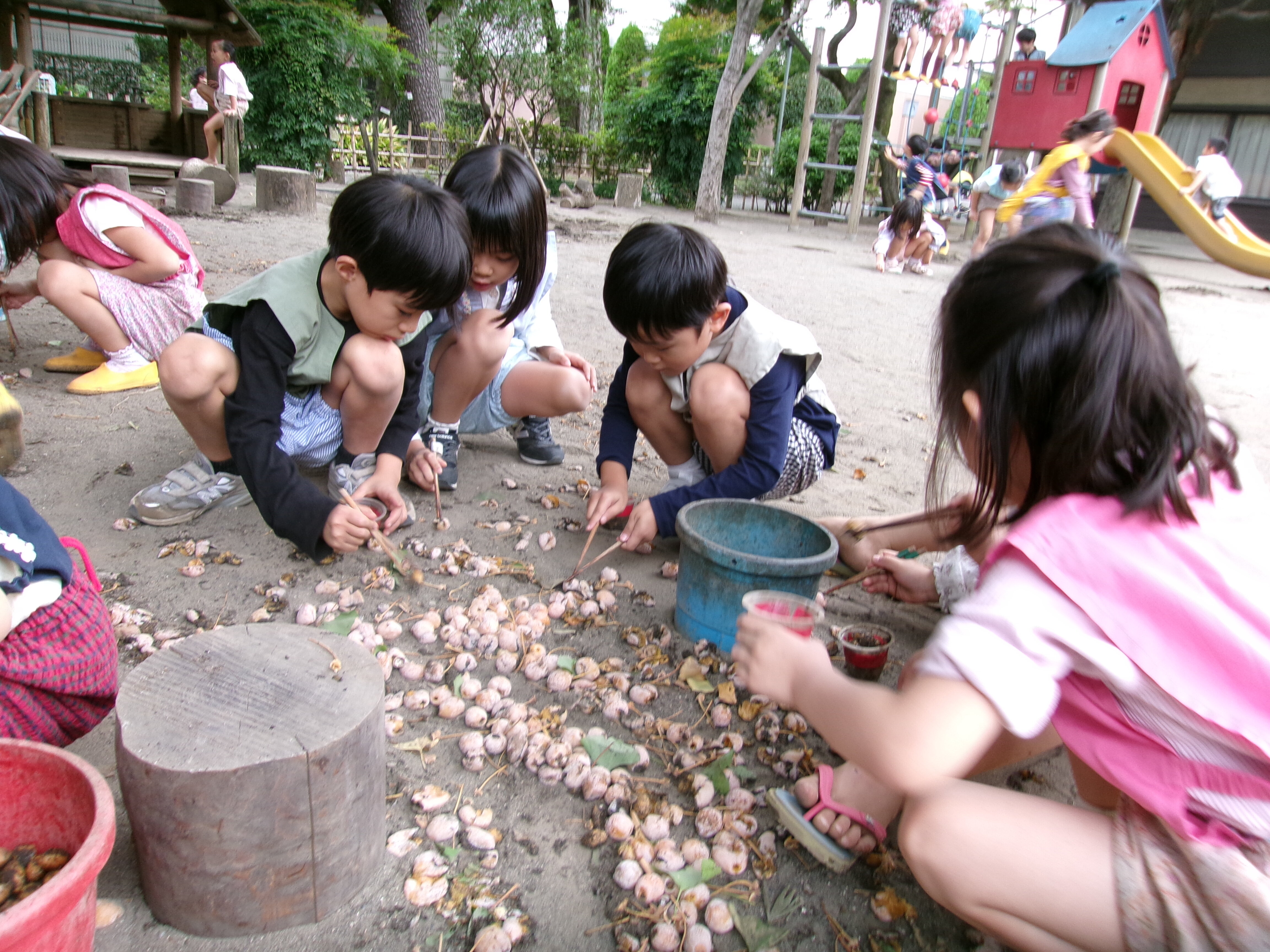 今年もいちょうの木はたくさんの銀杏を実らせました おはしで一粒一粒丁寧に拾っていきます