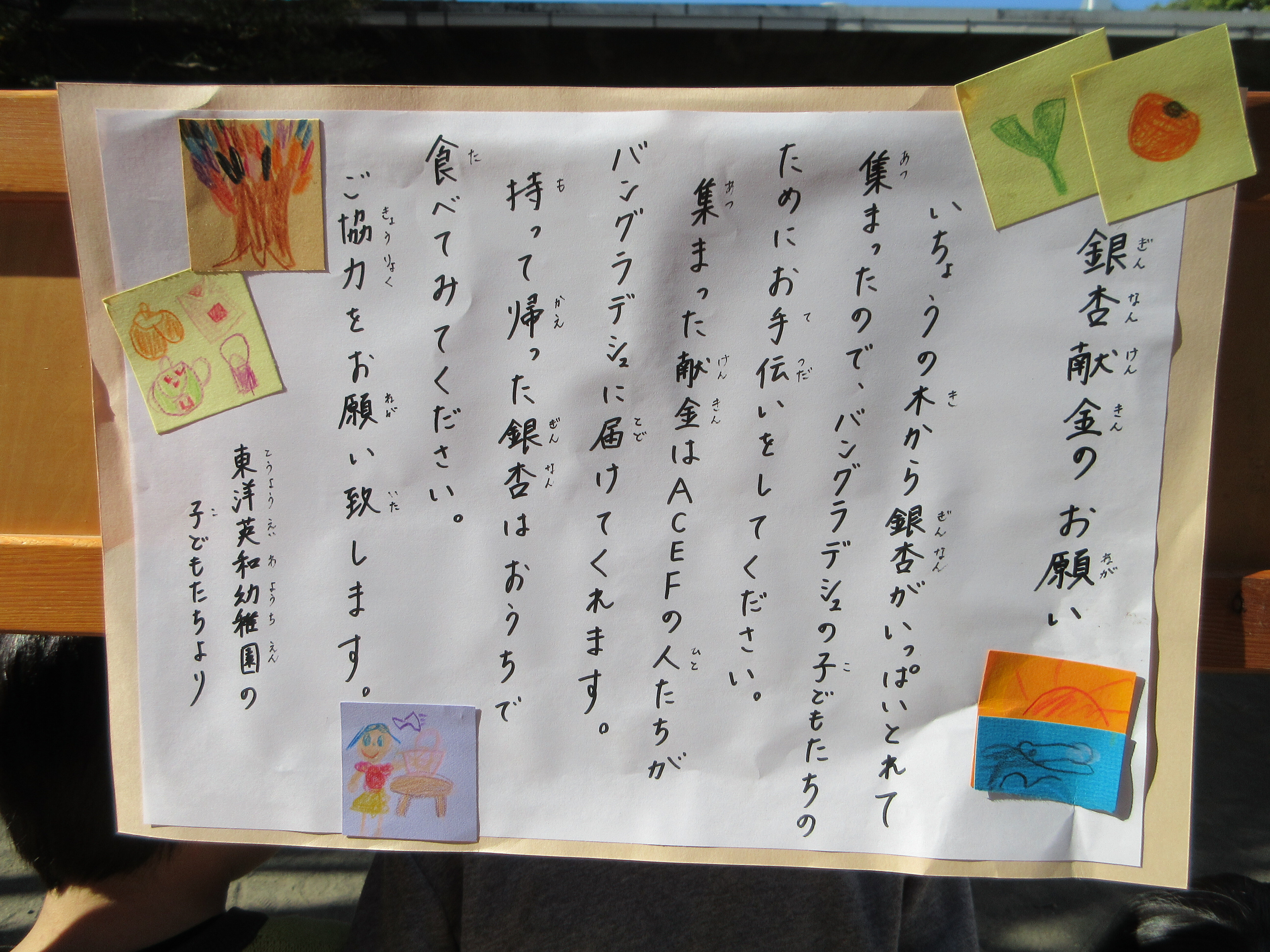 お家の方にも銀杏を差し上げて、神さまからの恵みへの感謝としてぎんなん献金をしていただきました