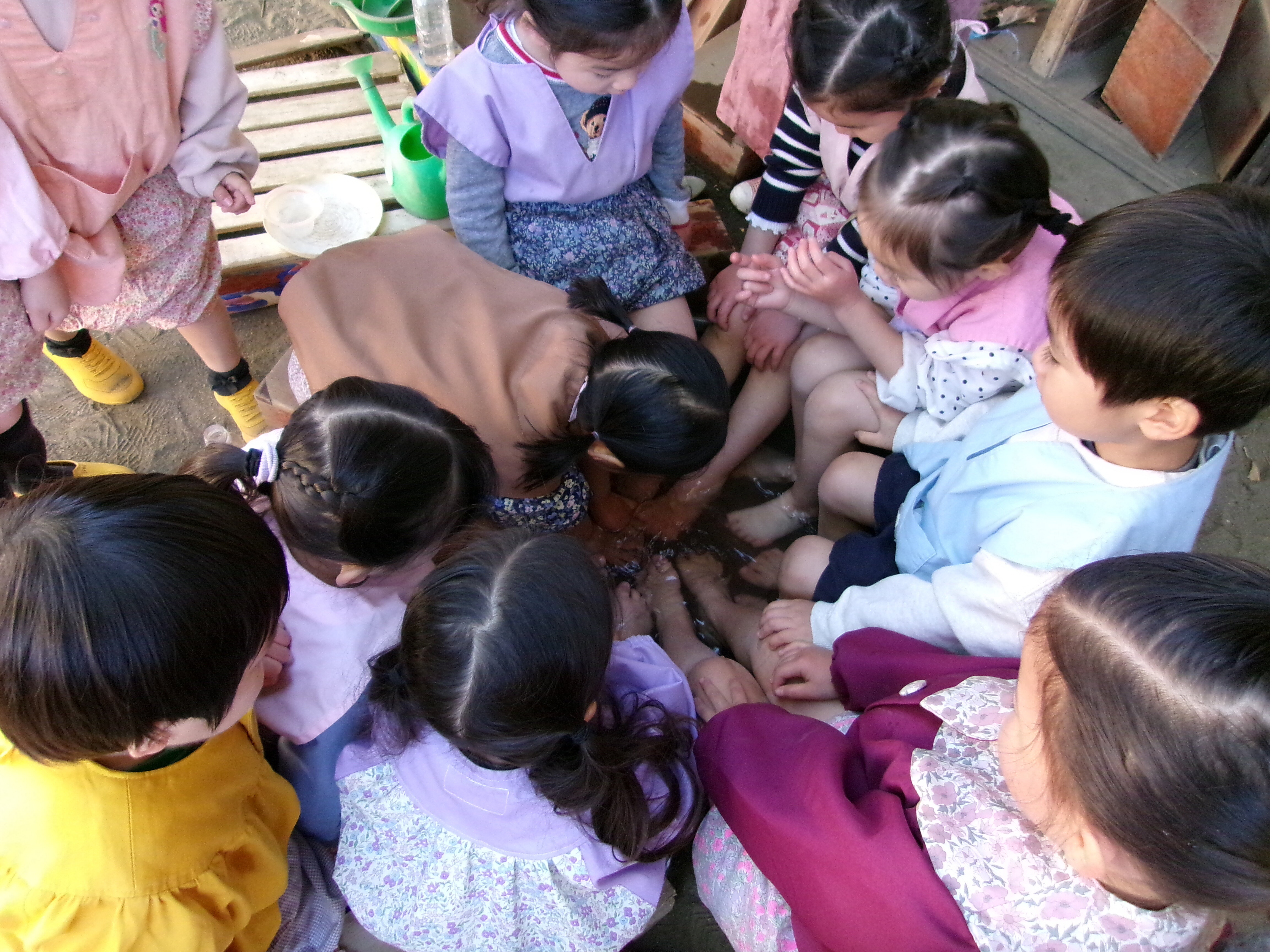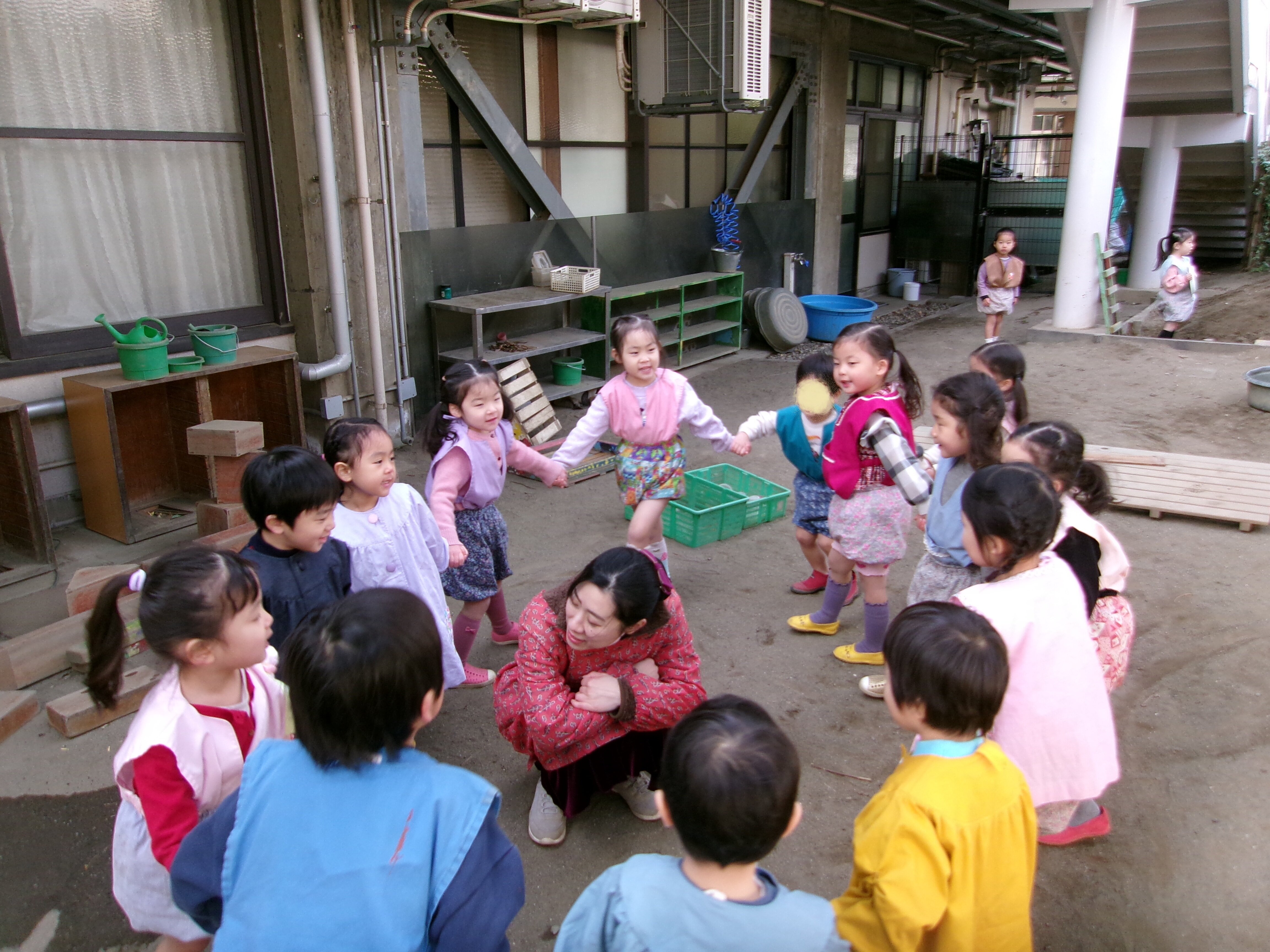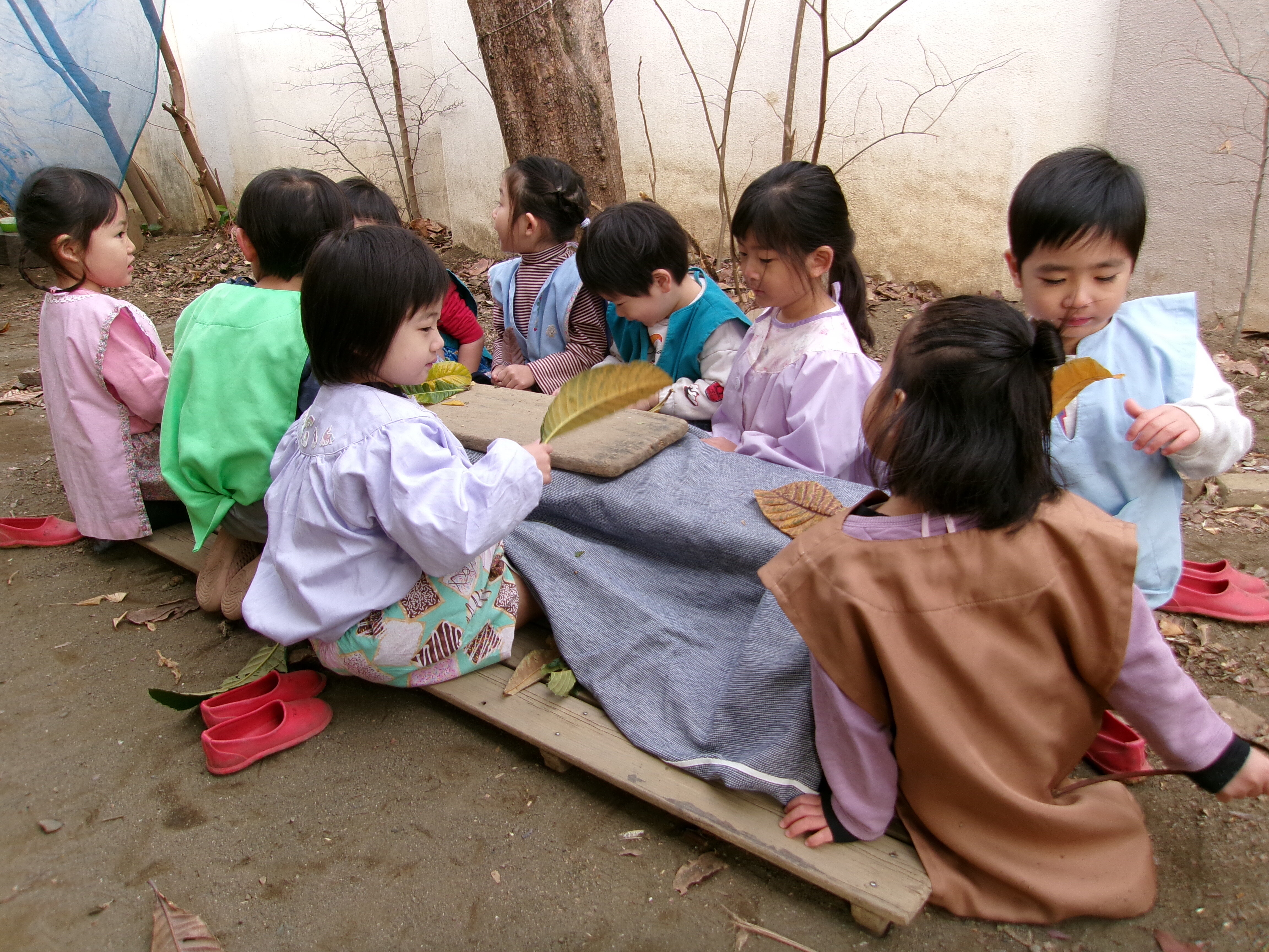 東洋英和幼稚園だより 寒い日でも ヒューム管の中に入り壁を作って むっくりくまさん 目を覚ましたら食べられちゃうぞ♪ あわてて走って逃げます 立派な長い枝をみんなで運んだり 大きな山を作って登ったり下りたり こたつ(板を渡したところに布をかけたもの)に入ってお肉(石)を食べたり 足湯で温まったりしています 前へ 一覧へ戻る 次へ