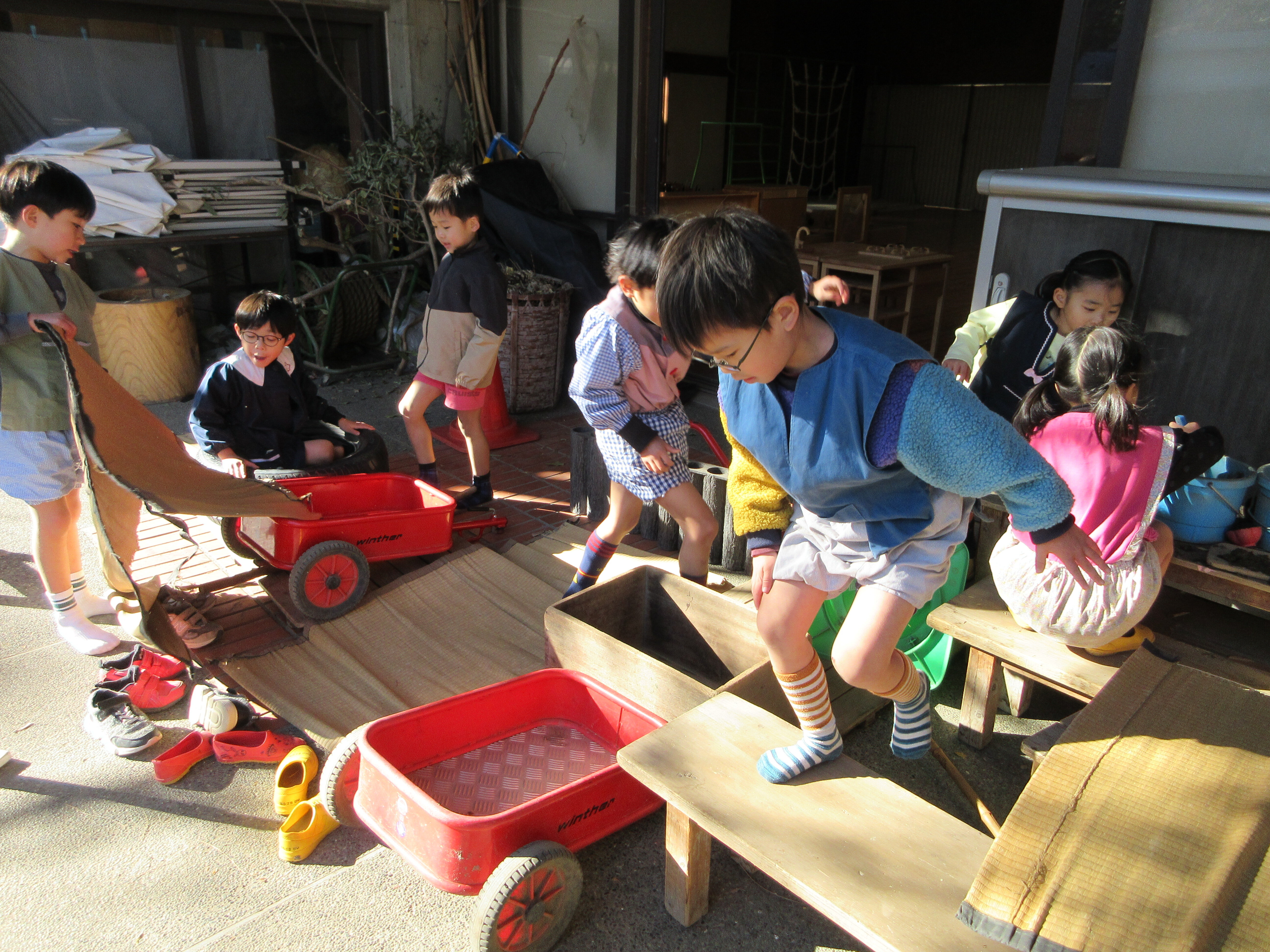 東洋英和幼稚園だより 年中年長組の子ども達 次はどの色にしようかな 好きな色の毛糸を選んで編んでいます 「病院ごっこには救急車がいるね」と、牛乳パックで救急車を作り始めました。 庭にはホテルができてお客様をおもてなしします 不動の人気 石 すのこ・大工の台・ワゴン車・ベンチ・ござ…様々なものを組み合わせて居場所を作っています 長いはしごは重たくて立てかけられず、自分達で工夫して上まではしごを繋げました ドッジボール 当てたり、逃げたり、キャッチしたり、体がよく動きます 前へ 一覧へ戻る 次へ