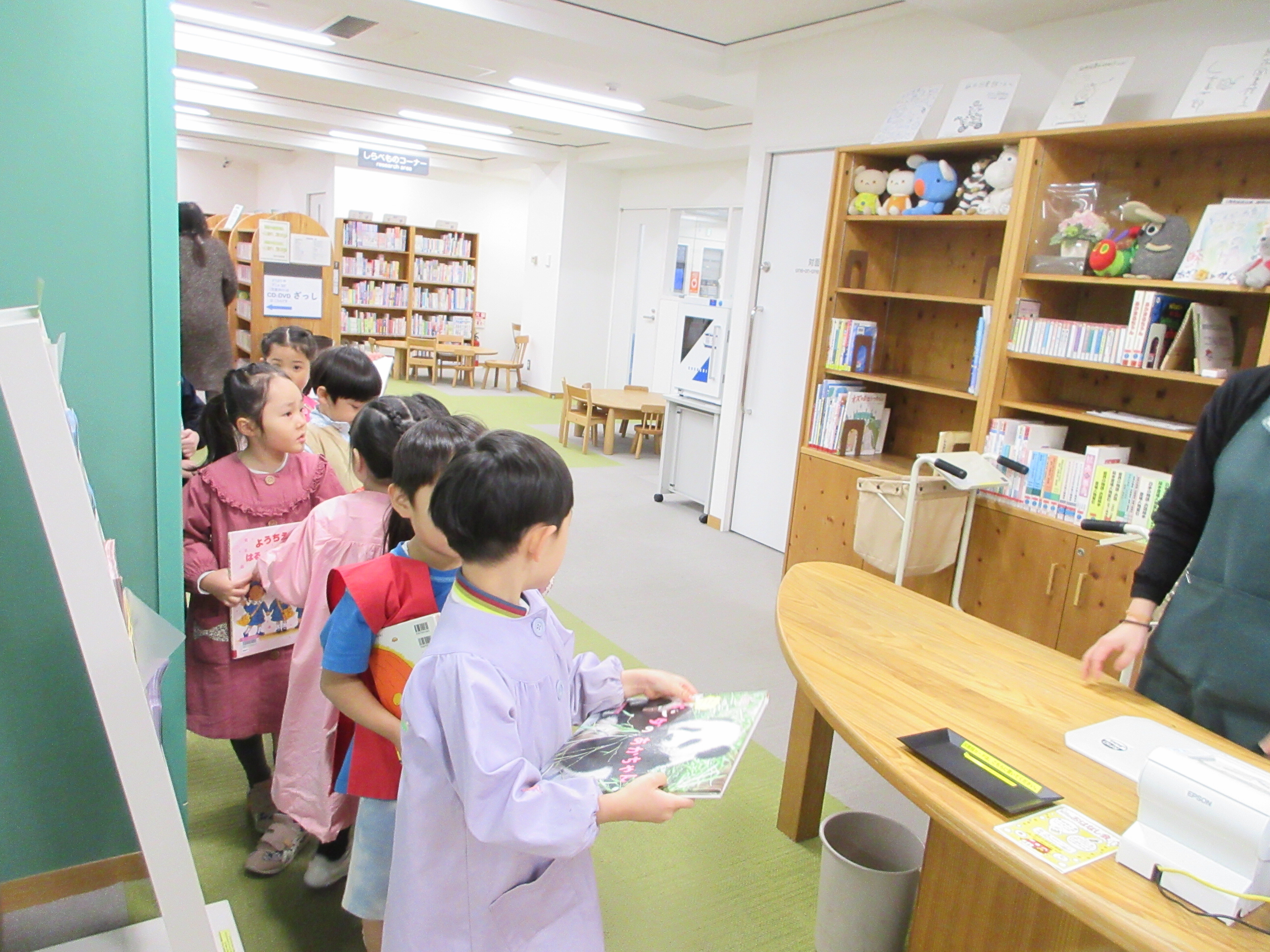 東洋英和幼稚園だより 図書館へ 年長組と年中組の子どもたちが手をつないで坂の下の図書館へ出かけました 興味のある本を手に取り、眺めます 友達と一緒の図書館はまた違った楽しみがあるようです ひとり一冊、好きな本を選んで貸していただきました 前へ 一覧へ戻る 次へ