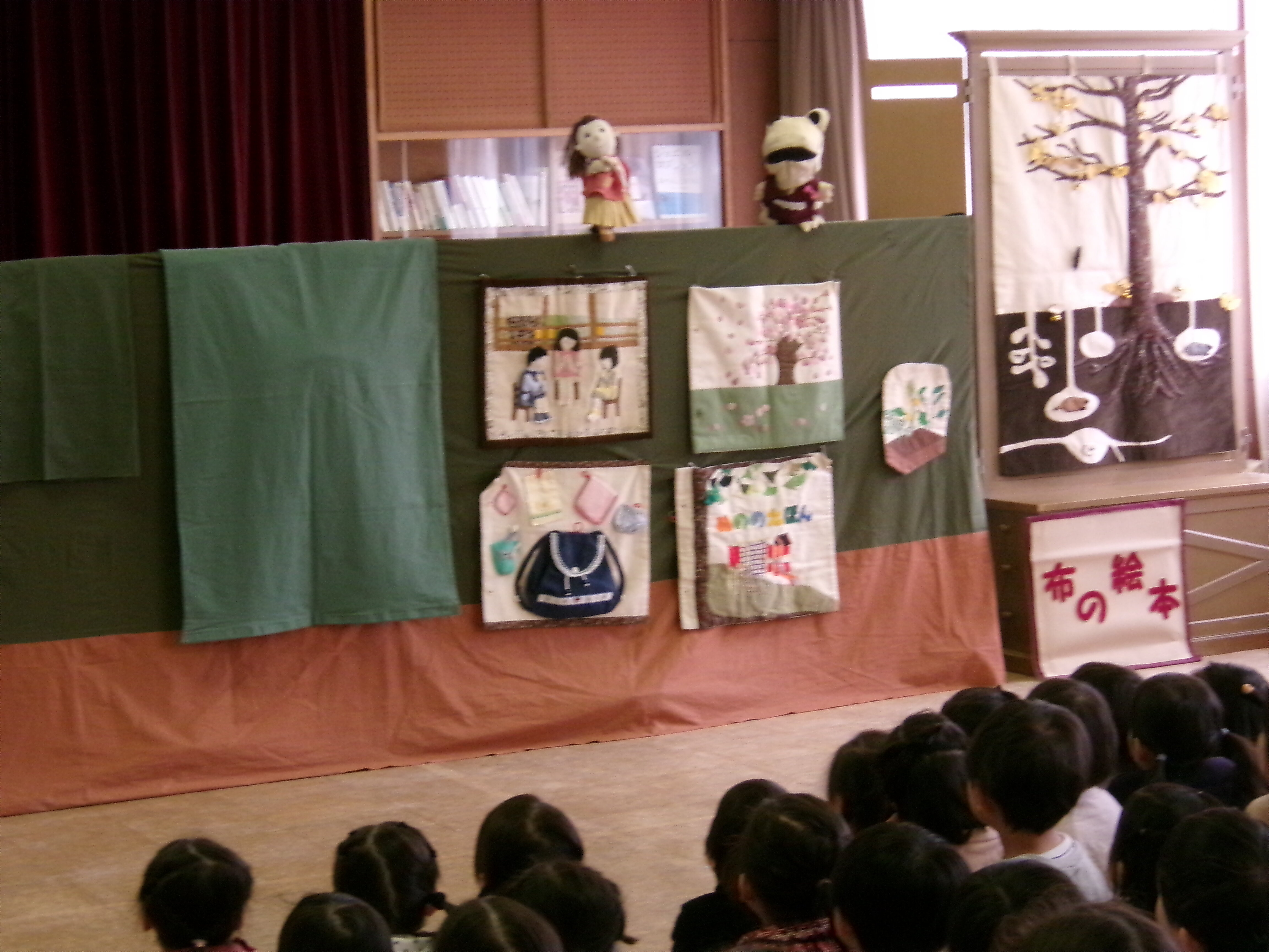 東洋英和幼稚園だより 布の絵本 東洋英和幼稚園で40年ちかく大切に受け継がれてきた保護者有志による「布の絵本」 「なにが始まるんだろう?」子どもたちは興味津々です ぐりとぐらが大きな卵をもって遊びにきました 夢中になって楽しんでいます やっと割れた卵を使って、料理を始めました 出来上がったのはカップケーキ ぐりとぐらが作ってくれたカップケーキをおやつにいただきました 前へ 一覧へ戻る 次へ