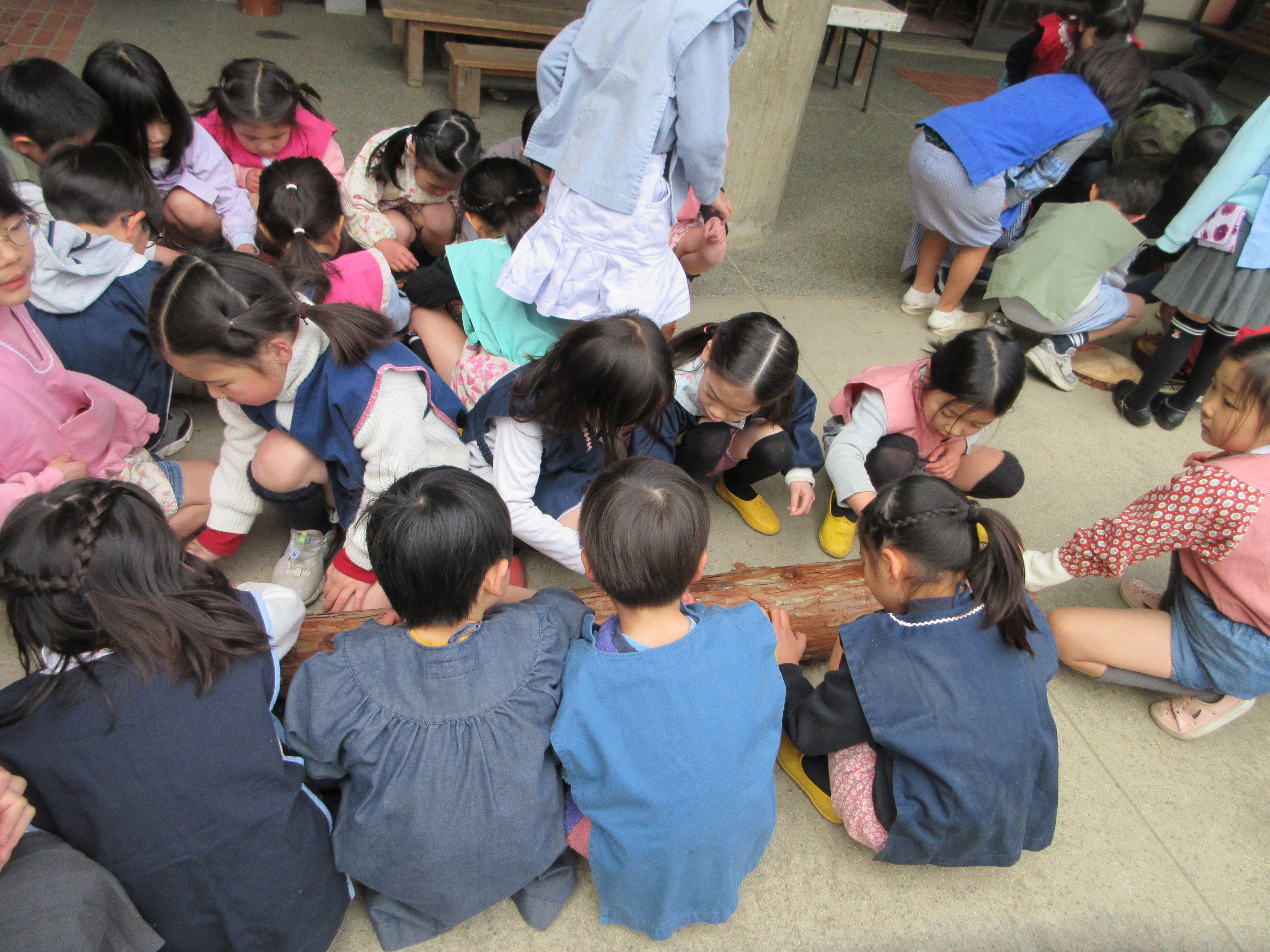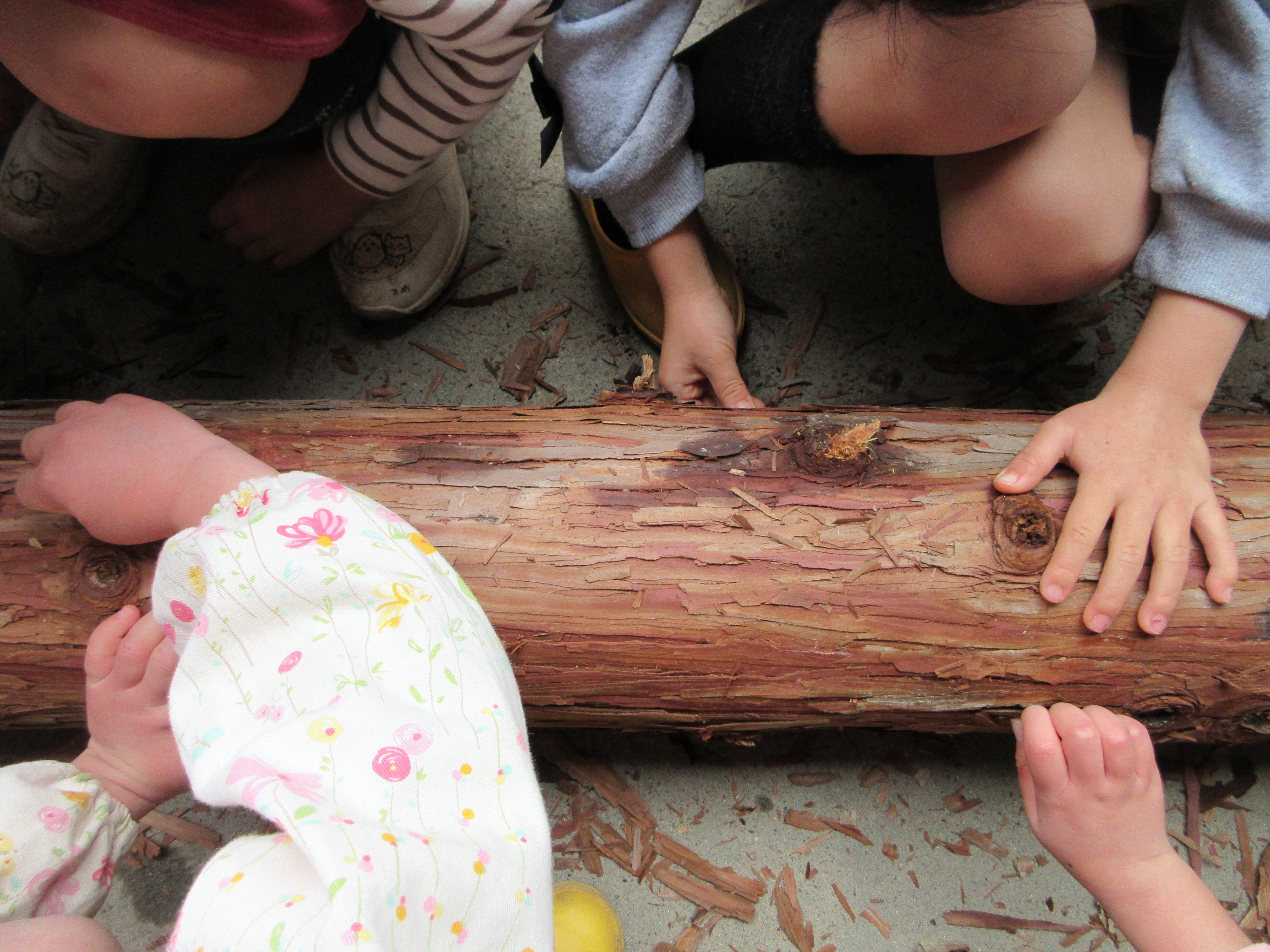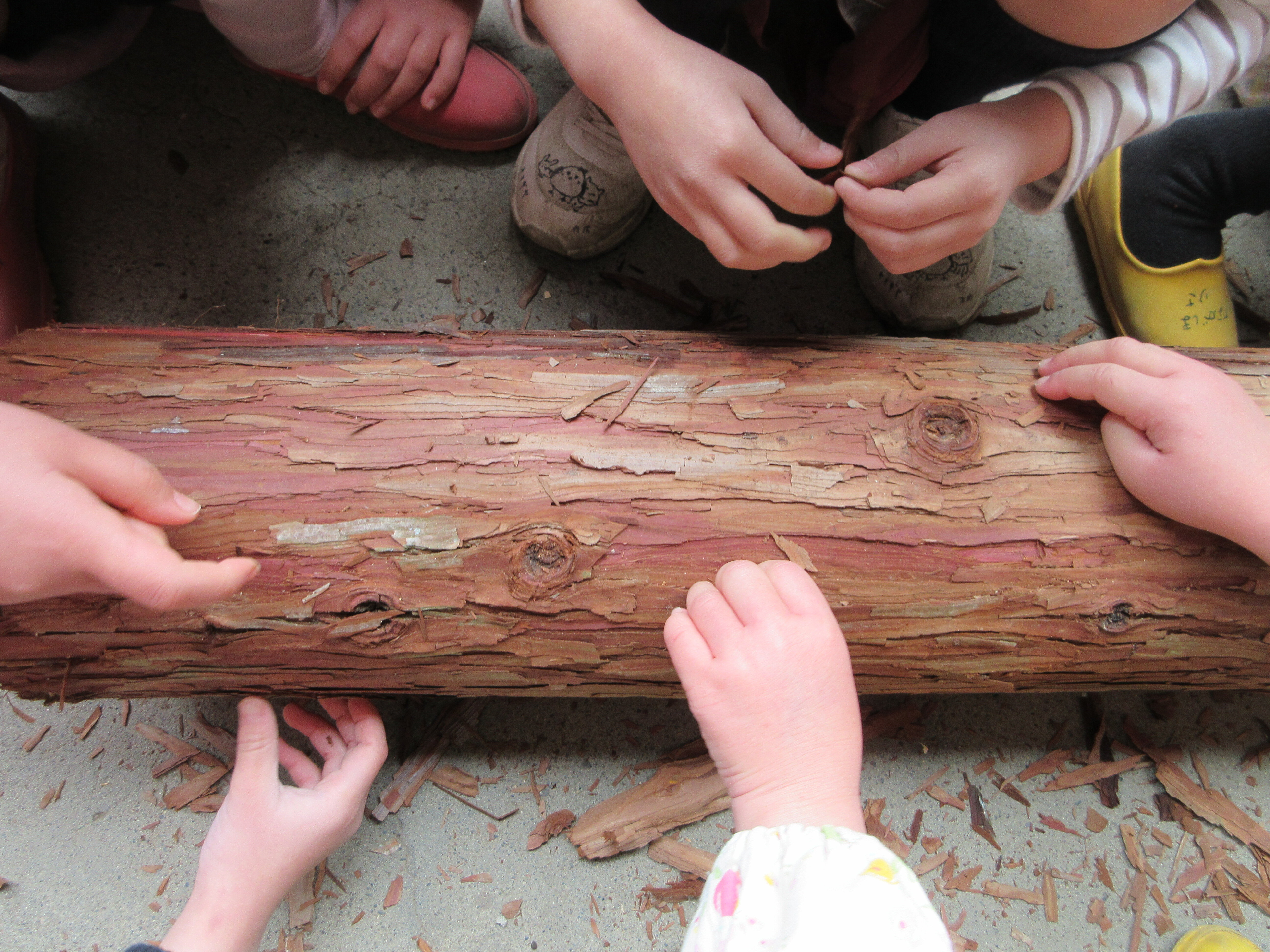 東洋英和幼稚園だより 奥多摩の森の木 夏に出かけた奥多摩の森から丸太が届きました 目の前に置かれたとたん… 皮をむく… むく… みんなで集まって皮をむきながら 楽しかった森を思い出しました 前へ 一覧へ戻る 次へ