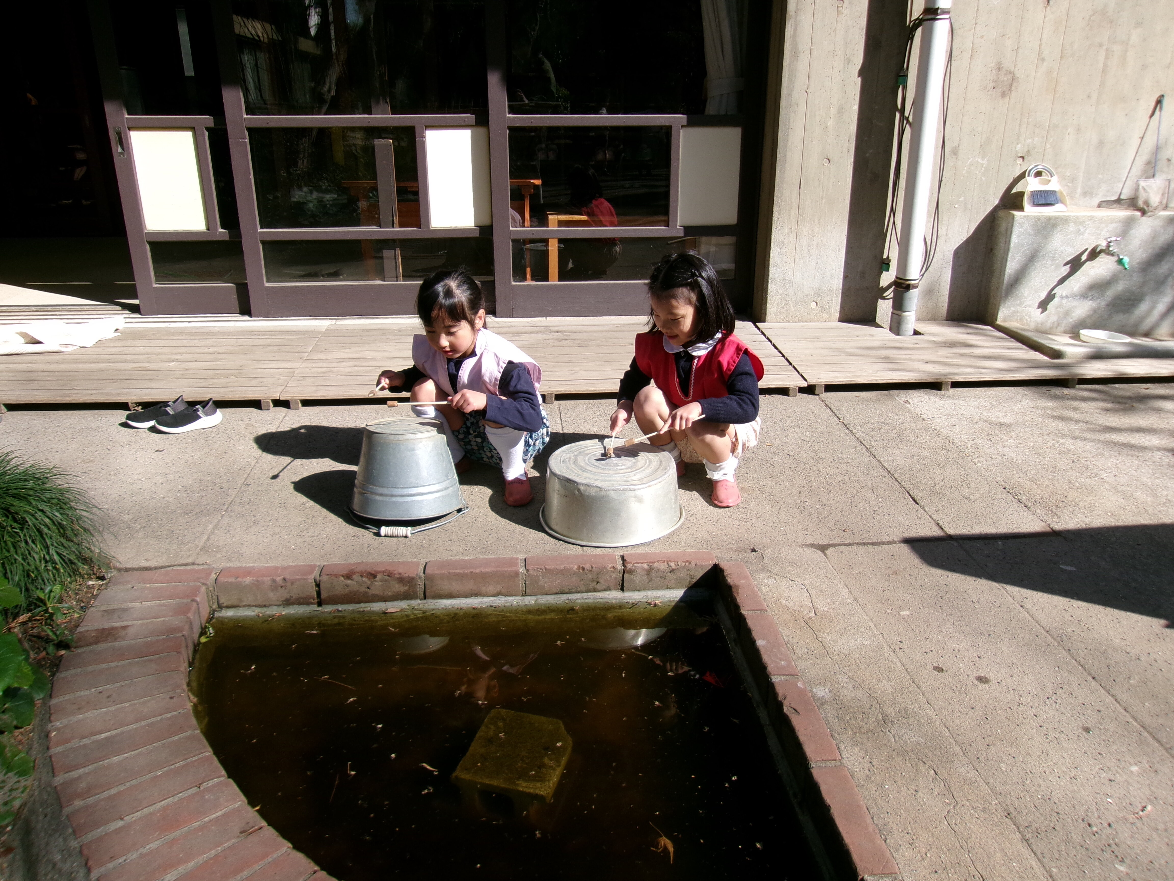 東洋英和幼稚園だより 3月 冷たい雨の降る日も、木の家の軒下の雨だれをカップ集めて遊んでいました バケツやタライをひっくり返してたたくと、りっぱな太鼓になります 園舎ができて間もない頃寄付された「スカイジム」子どもたちが大好きな遊具の一つです ままごと部屋 布団を敷くのに忙しそうです 年長組の子どもたちが何かを広げて相談しています 年中組の子どもたち こちらも一生懸命なにか作っています 前へ 一覧へ戻る 次へ